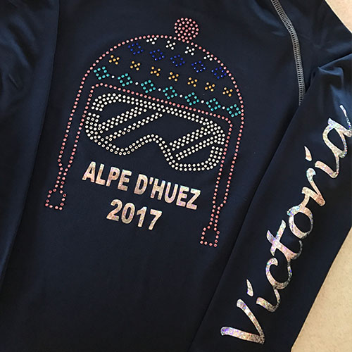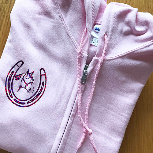 We offer a wide range of clothing styles to suit your requirements such as hoodies, t-shirts, polo shirts, jackets, sweaters and Hi-Viz clothing. All items can be personalised with sparkling rhinestones or various vinyls with a matt, holographic, neon or glitter finish.